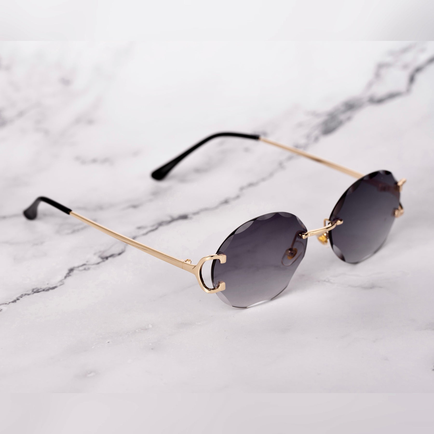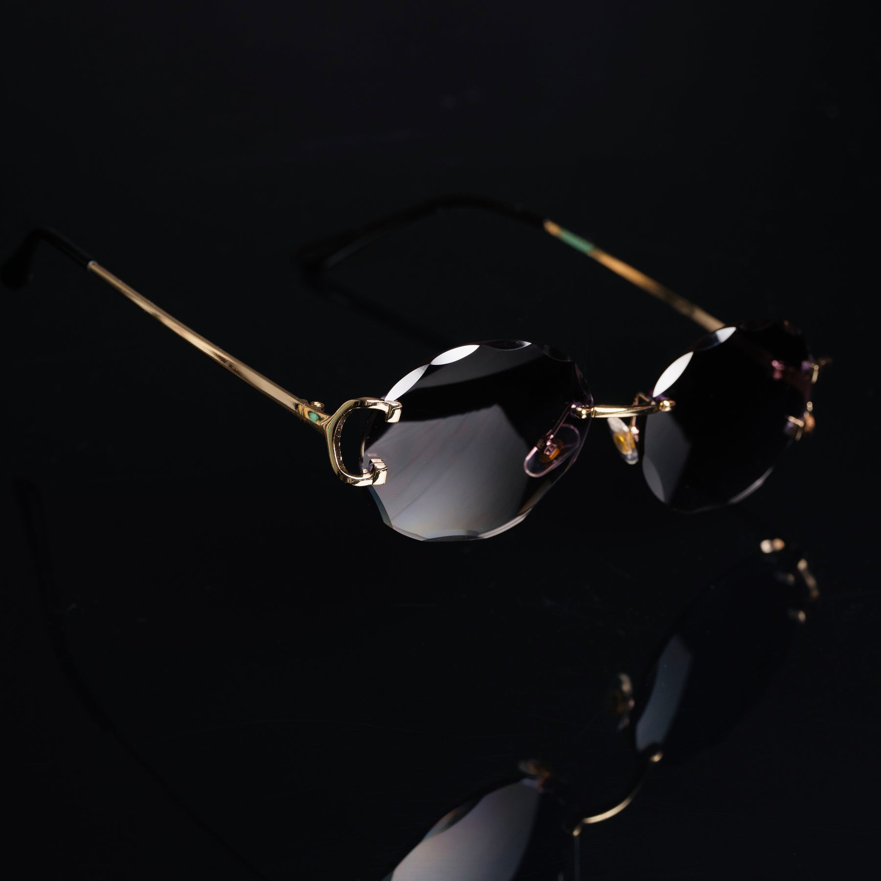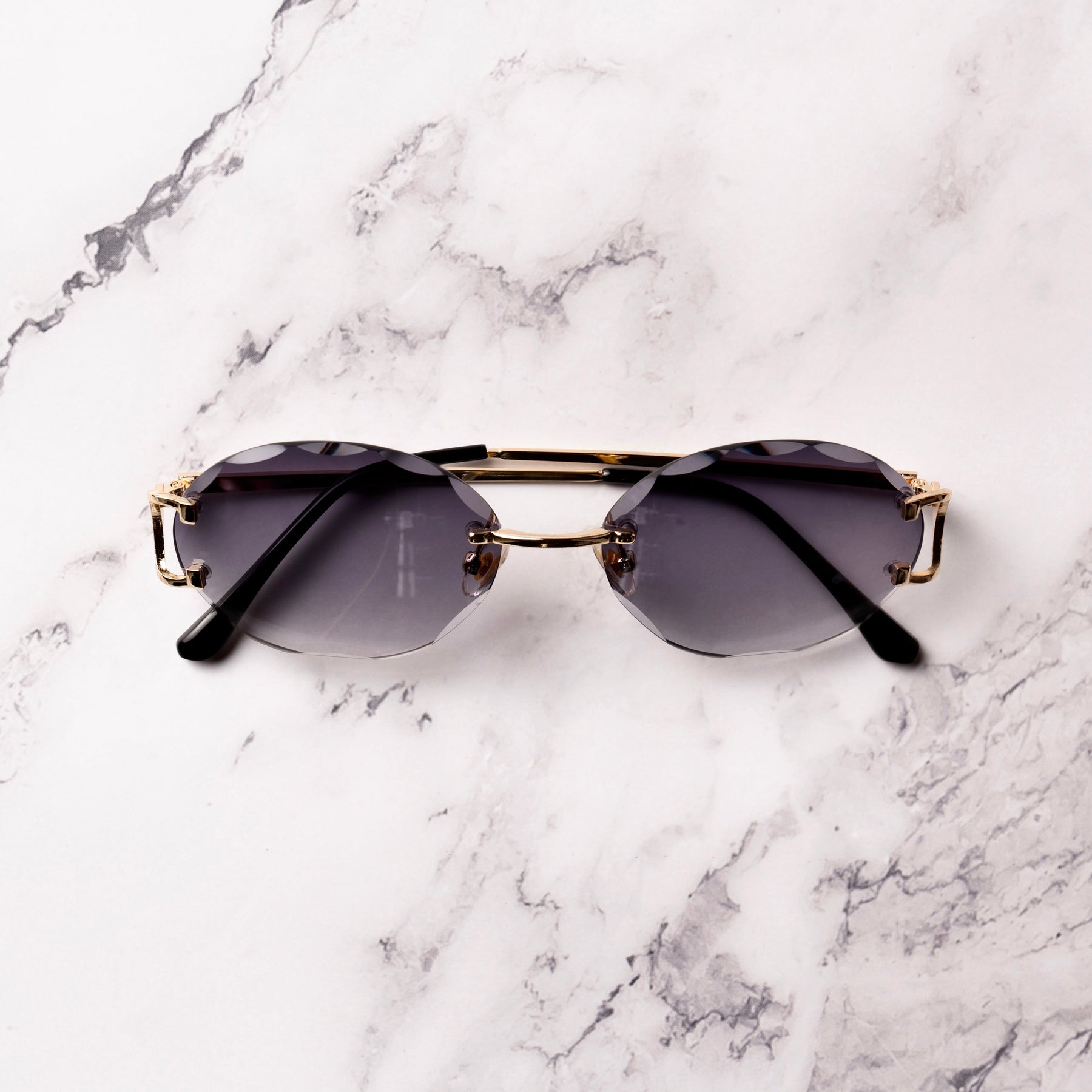 The Dubai by Mondi is a unique pair of glasses that outshines all other rimless sunglasses. The Dubai features unique oval lenses with a double diamond cut (inside-out), and the frame is 18k gold-plated, equipped with silicone nose pads for comfortable wear.